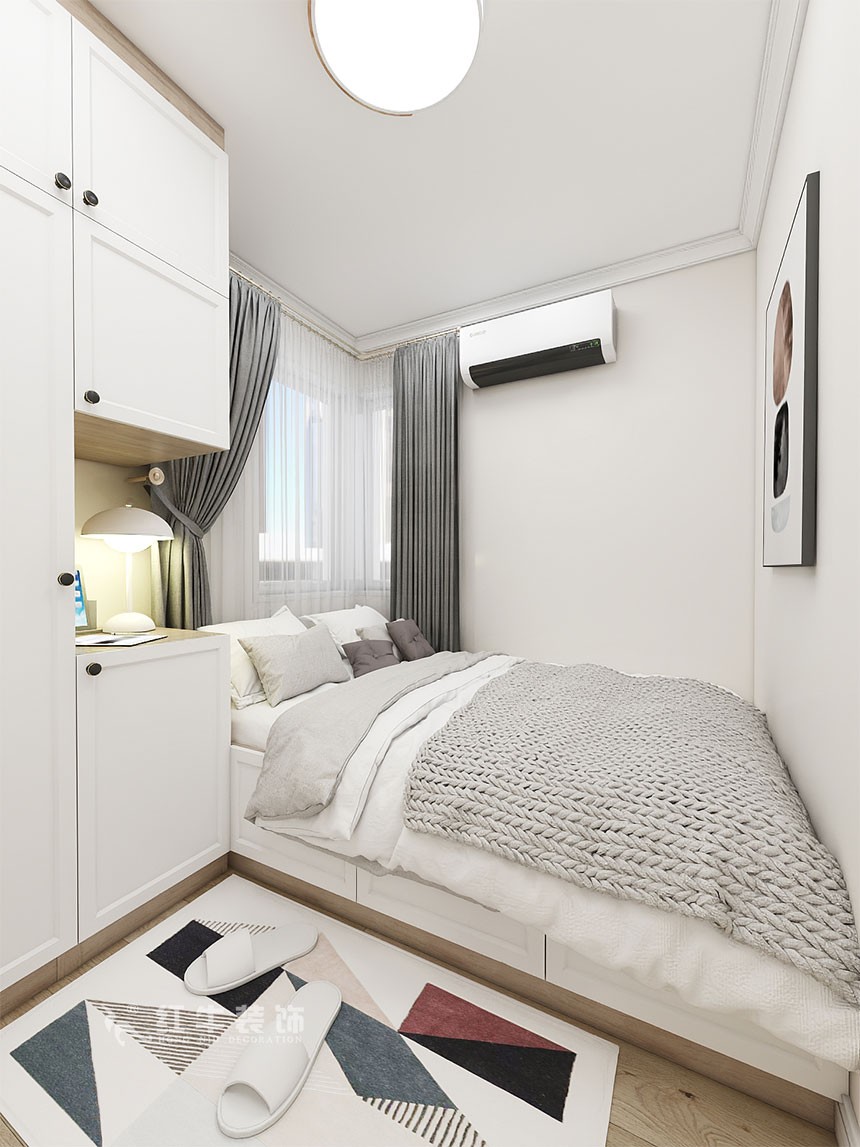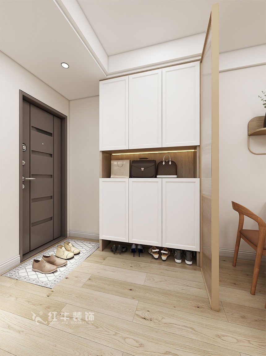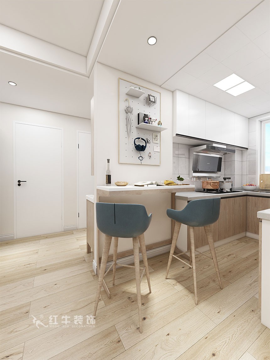業(yè)主是一對90后,整體的風(fēng)格最終確定為北歐風(fēng)格,利用了過道的空間多了一些儲物空間,同時把雙門冰箱挪到外面,這樣保證了廚房充足利用,顏色整體以白色為主,作了一些跳色。