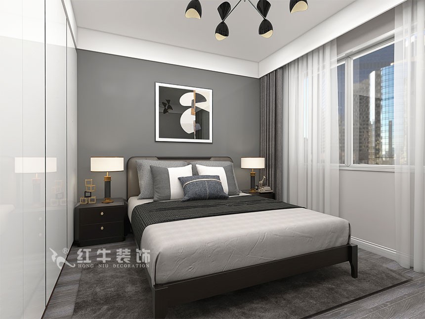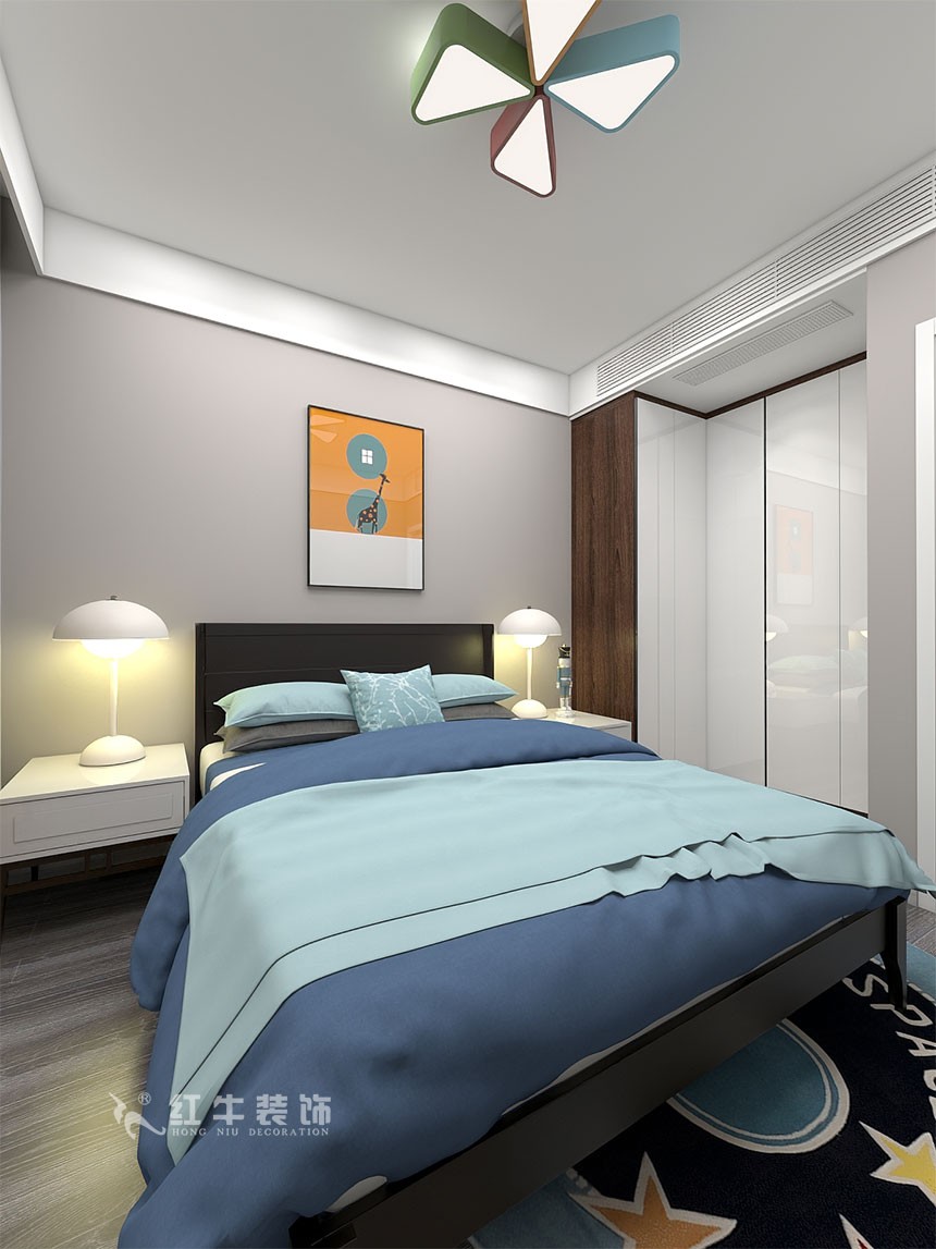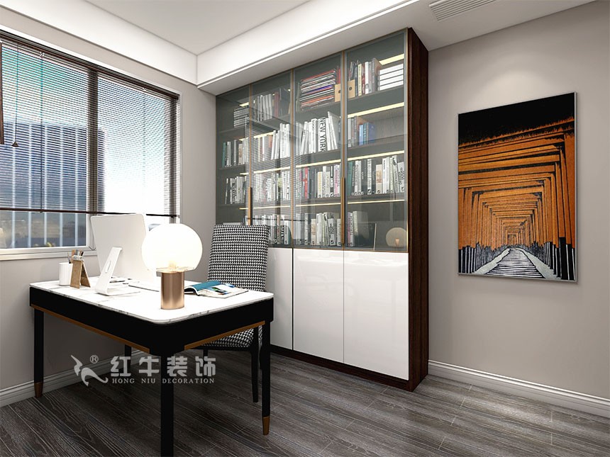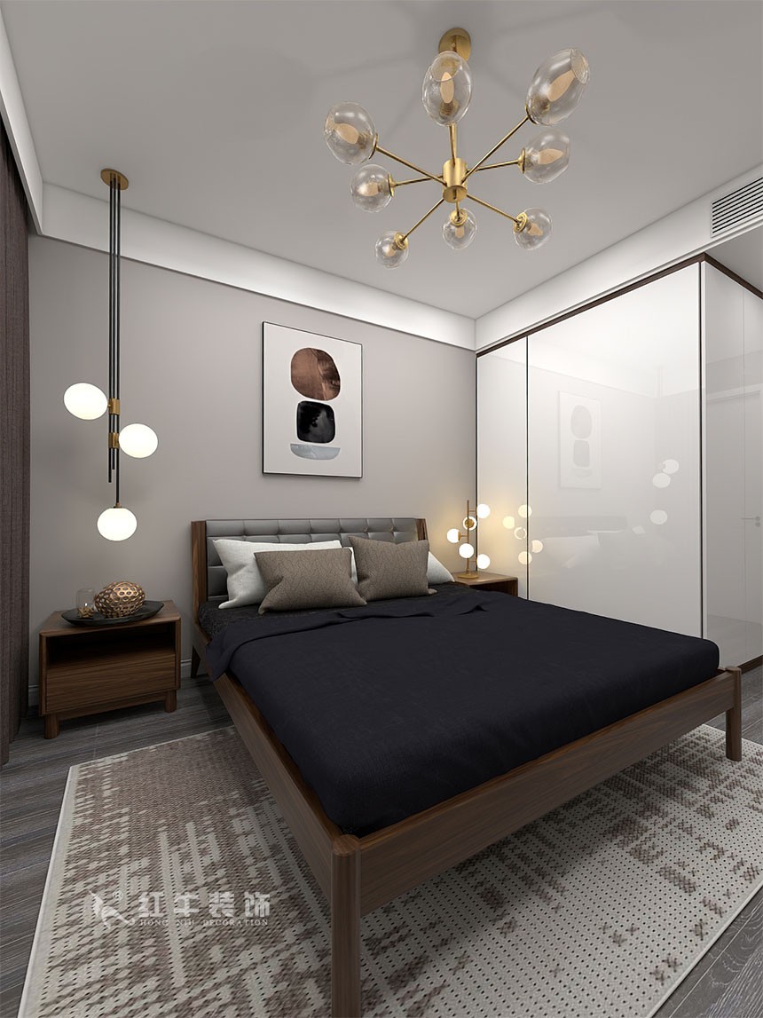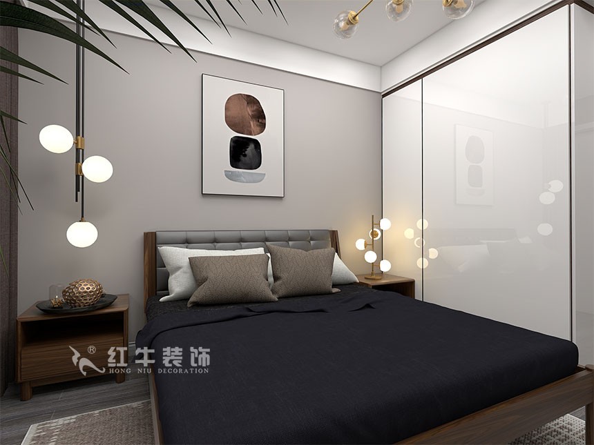 客餐廳色調(diào)統(tǒng)一又不失精致,電視背景墻沒有過(guò)多的華麗修飾,給空間本身一個(gè)開拓、延展性,給居住者一個(gè)慵懶、明快的起居環(huán)境。主臥次臥,依靠現(xiàn)代風(fēng)格家具本身的線條感,搭配同樣風(fēng)格的裝飾畫,給人以休閑自在的視覺感受。書房是辦公空間,臨窗處以整面墻的衣柜來(lái)做處理,搭配榻榻米設(shè)計(jì),給了本就不大的空間一個(gè)視覺的開放性,心情也自然就舒緩很多。