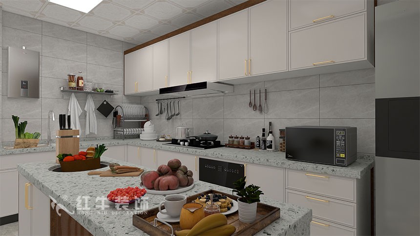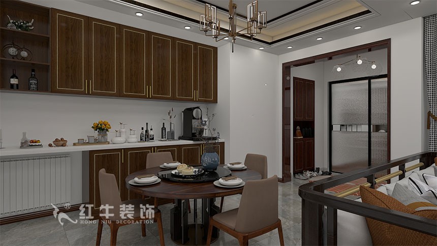 本案是四室兩廳兩衛(wèi)一樓帶院子的戶型三代人居住,因?yàn)橹饕歉改钢鳎L(fēng)格定義是新中式,以現(xiàn)代美感來(lái)塑造空間氛圍,時(shí)尚與古典相互融合,有內(nèi)有外,內(nèi)外兼修。整體空間做了調(diào)整,打開(kāi)入戶右邊送的設(shè)備平臺(tái),設(shè)計(jì)為書(shū)房,平時(shí)坐在書(shū)房看書(shū)的時(shí)候,也可以一覽院子里的美景,進(jìn)入大門后,做了一個(gè)隔斷分區(qū),分割一個(gè)入戶門廳,提高利用率和私密性,主臥室的衛(wèi)生間也做了調(diào)整,改變以前的落地窗,一分為二,衛(wèi)生間的功能/私密性都不影響的情況下,還多了一個(gè)儲(chǔ)藏室。出房間也做了調(diào)整,打掉所有的非承重墻,廚房中間做了中島臺(tái),平時(shí)可以用作早餐臺(tái)逢年過(guò)節(jié),大家聚在一起包餃子,其樂(lè)融融,生活氣息濃厚。