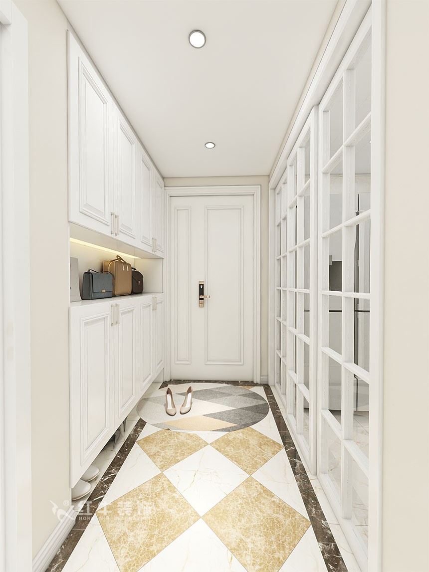 因戶型空間原布局較為復(fù)雜且局限,業(yè)主需求又為簡(jiǎn)歐風(fēng)格,所以講戶型稍作改動(dòng)后根據(jù)溝通進(jìn)行軟配上的多元素設(shè)計(jì)。