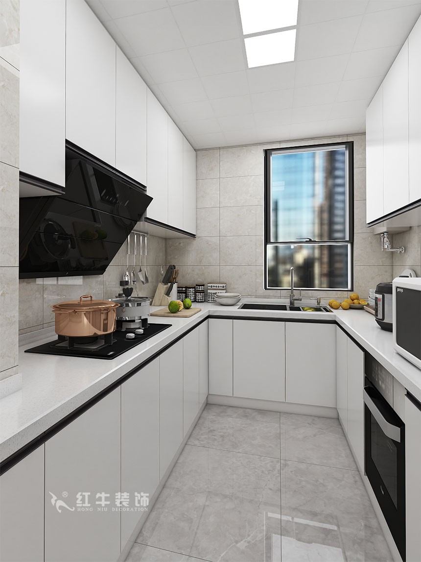 房子就是比較常規(guī)的四房兩廳的戶型,客戶家里兩個(gè)孩子,需要很多的收納空間,同時(shí)四個(gè)房間都要保留,所以在客廳空間,把整個(gè)背景墻加了一組整體柜子。廚房也整體擴(kuò)出來了,增加了臺(tái)面空間。