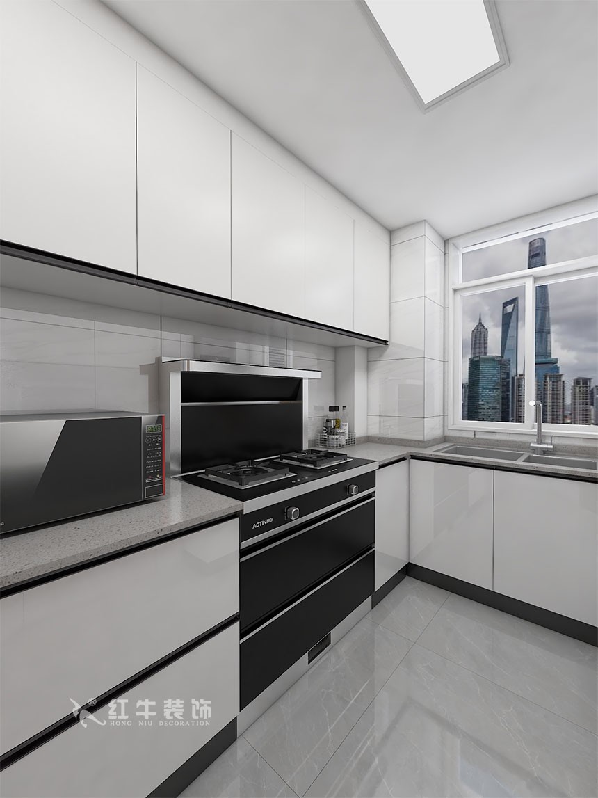 本案設(shè)計業(yè)主兩代人居住,父母做未來養(yǎng)老房,女兒第二居所。通過布局改造,增大廚房面積,北臥門移動位置,顯得空間更加修長。廚房通過斜墻改造。將餐廳陽角有效覆蓋。使空間變得圓潤。廚房集成灶的使用,釋放出了吊柜的空間。