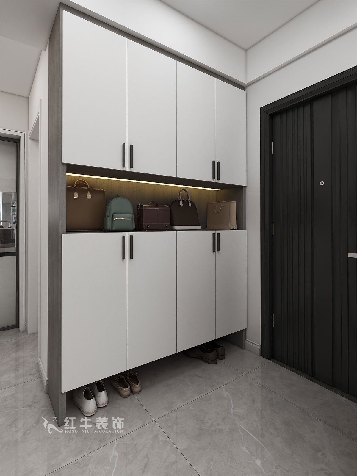 本案簡約風(fēng)格,在增加儲物功能的基礎(chǔ)上利用了門廳區(qū)域,裝飾柜既能儲物也可以展示。廚房在墻體的改造下把冰箱合理安排好,次臥室整體規(guī)劃后增加了儲物功能,在空間的設(shè)計上強調(diào)的是室內(nèi)空間開闊的理念,這樣的設(shè)計風(fēng)格沒有過多的裝飾物,主要以簡單的線條和裝飾簡潔的造型來體現(xiàn)出現(xiàn)代簡約型的設(shè)計。