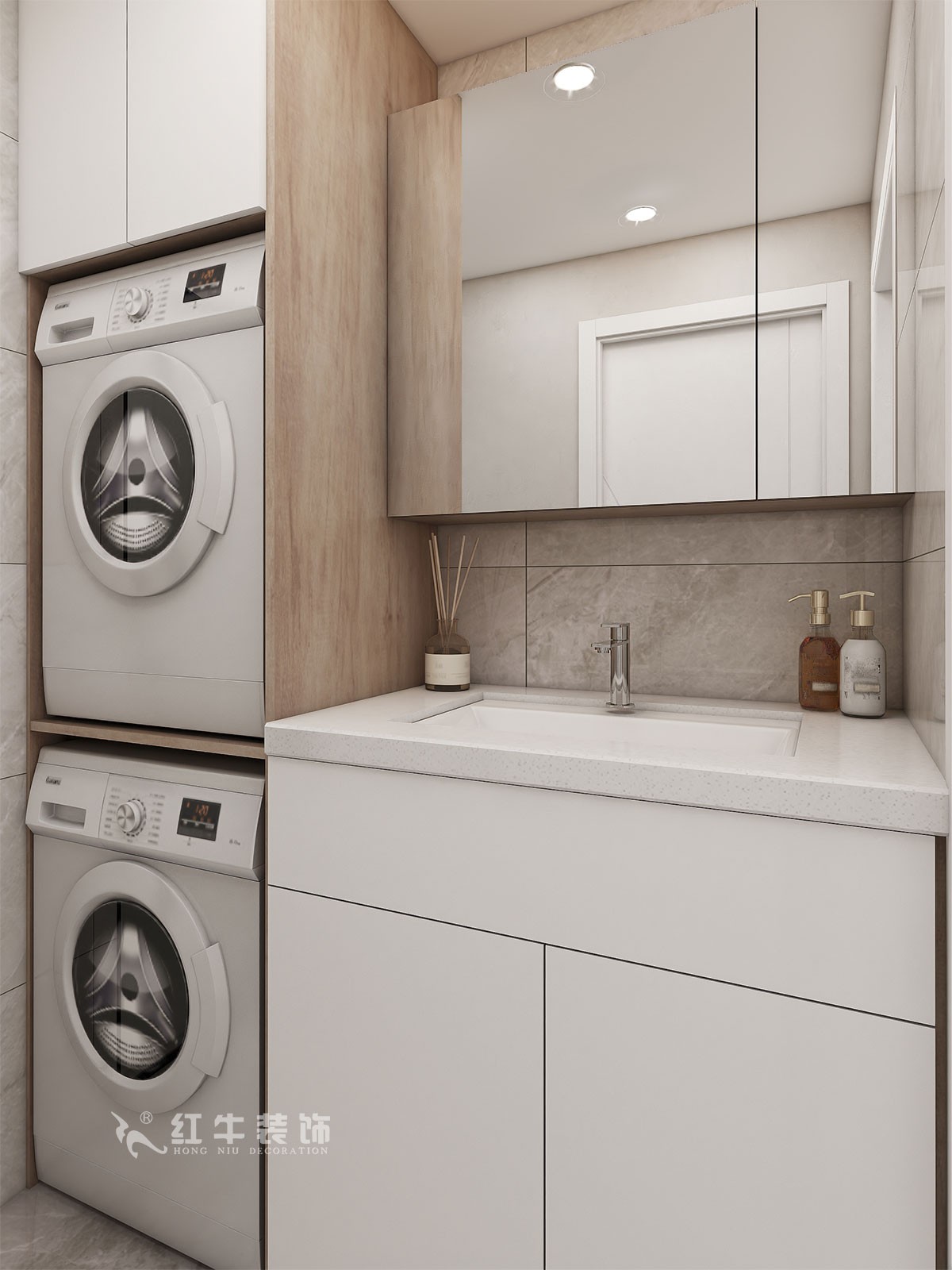 業(yè)主是一對80后,整體的風(fēng)格確定為簡約風(fēng)格,考慮到每個(gè)空間的合理利用,首先利用了廚房里的北陽臺(tái)空間,讓廚房變得更大更規(guī)整,空間布局更合理。其次由于房子陽臺(tái)沒有下水,把洗衣區(qū)放到了衛(wèi)生間,同時(shí)衛(wèi)生間做成了干濕分開,這樣把大的衛(wèi)生間做到了合理的規(guī)劃。