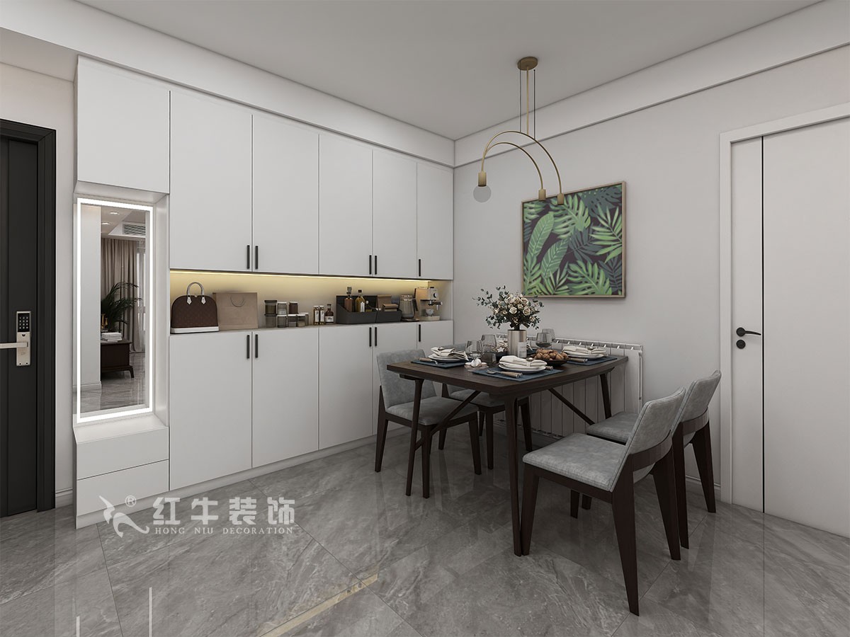 本案簡(jiǎn)約風(fēng)格,通過(guò)業(yè)主溝通之后,把衛(wèi)生間改成干式分開,同時(shí)門廳部分增加了儲(chǔ)物空間,在空間的設(shè)計(jì)上強(qiáng)調(diào)的是室內(nèi)空間開闊的理念,這樣的設(shè)計(jì)風(fēng)格沒(méi)有過(guò)多的裝飾物,主要以簡(jiǎn)單的線條和裝飾簡(jiǎn)潔的造型來(lái)體現(xiàn)出現(xiàn)代簡(jiǎn)約型的設(shè)計(jì)。
