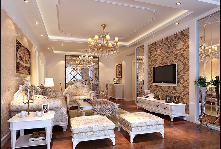 歐式的居室有的不只是豪華大氣,更多的是愜意和浪漫,暖色的基調(diào)配合純白的家私擁有無盡的舒適感。作為簡歐來說,處處曲美背景的走邊線條,無需花哨繁瑣。點線面稍加一些弧形更貼近于自然,并融入了比如羅馬柱,拱門等非常有代表性的歐式元素,軟裝配飾的色調(diào),與背景的硬裝相互共鳴,映入大氣的柔美。背景墻的大塊拼花墻紙,大氣凜然,凸顯低調(diào)的奢華。餐廳邊整面的車邊銀鏡增加了采光的同時,又將戶型空間得到了無限的延伸,點點的精致,源于對細節(jié)的處處考量,歐式吊頂金燦燦的光芒,灑滿家的每個角落。沙發(fā)背景的造型與羅馬柱拱形的門廊,相互映襯,統(tǒng)一的視覺感讓設(shè)計空間協(xié)同舒適。