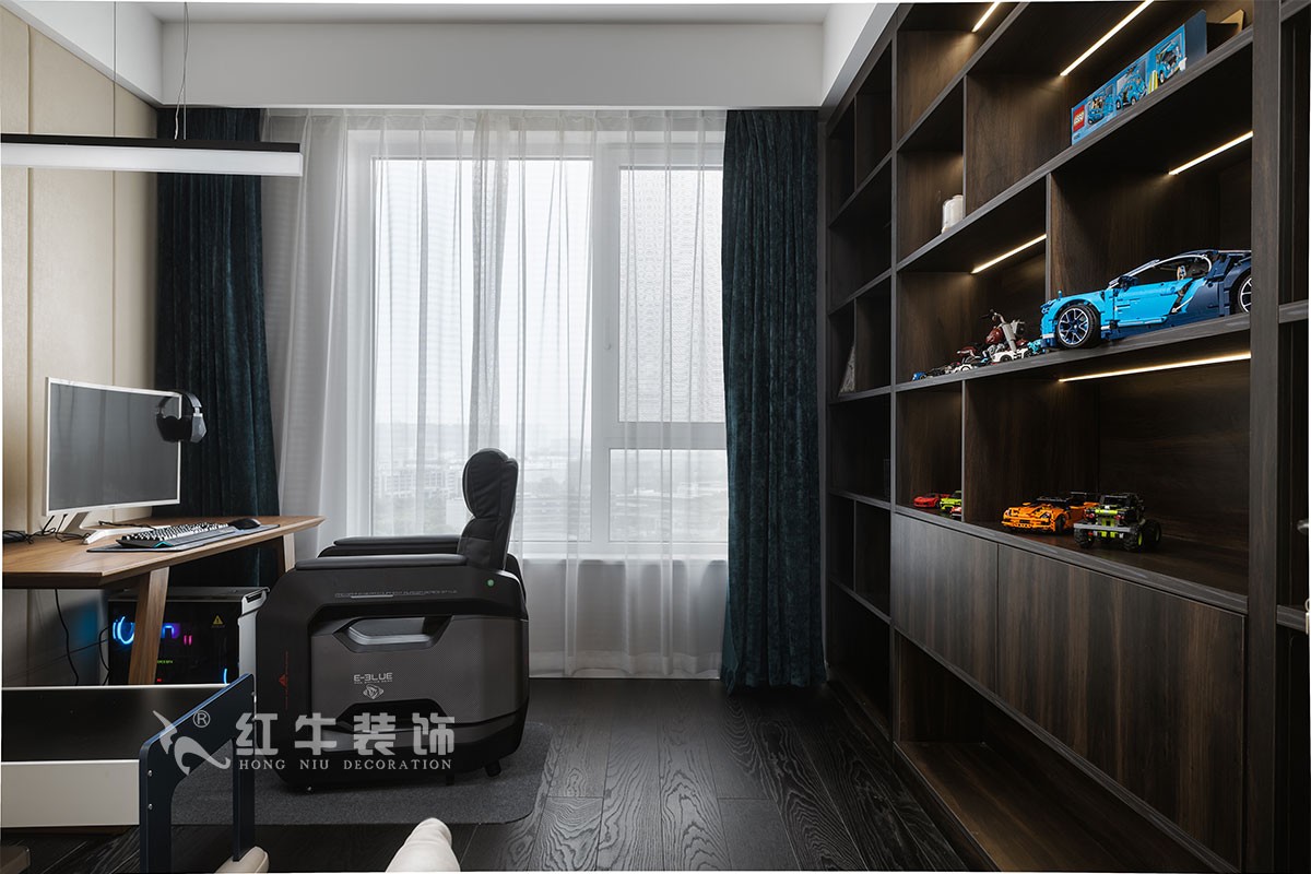 第二臥室空間相對(duì)較小,設(shè)計(jì)師通過(guò)有效的空間規(guī)劃和布局,采用設(shè)計(jì)方案相結(jié)合的方式,將規(guī)劃出的睡眠區(qū)、接待區(qū)、娛樂(lè)區(qū),使業(yè)主能夠享受到良好的家庭生活。這樣的第二間臥室,我相信會(huì)有一種家的感覺(jué)。