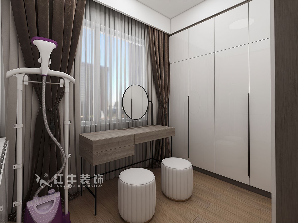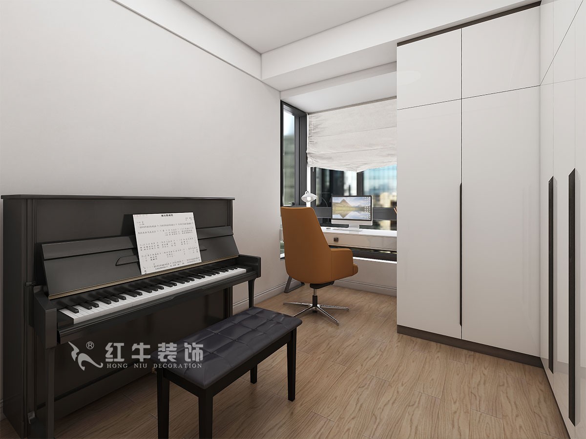 戶型本身的結(jié)構(gòu)比較規(guī)整,結(jié)構(gòu)上幾乎沒有做什么改動(dòng),客戶不喜歡多余的裝飾,整體方案簡潔大方。客戶需要一個(gè)大的衣帽間,也是母女倆的化妝間。書房房臨窗處書桌,給了本就不大的空間擺放鋼琴,這樣視覺更開放,心情也自然就舒緩很多。