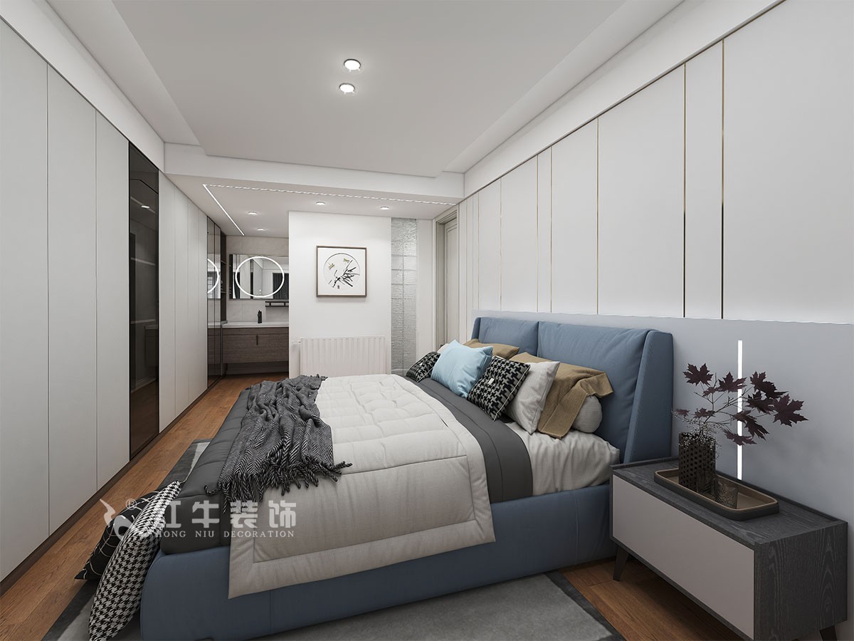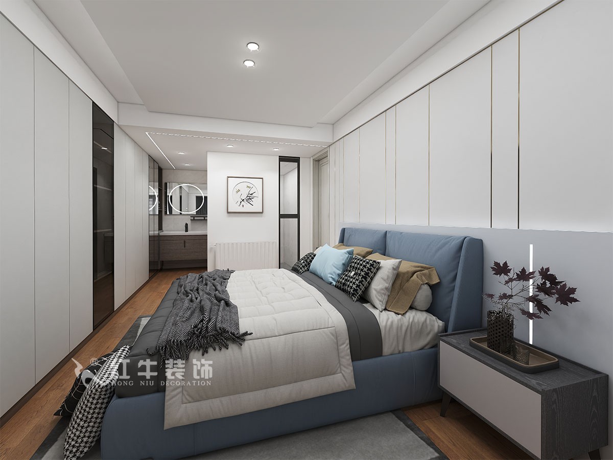 根據(jù)和客戶溝通,客戶喜歡現(xiàn)代風(fēng)格里面帶有一些中式文化的元素,但是整體造型還是希望是現(xiàn)代風(fēng)格,結(jié)構(gòu)上要求兩個衛(wèi)生間都是干濕分開,餐廳希望是圓桌。設(shè)計在結(jié)構(gòu)上做了很大的調(diào)整改變,客衛(wèi)生間的墻體進(jìn)行了調(diào)整,干區(qū)的位置也進(jìn)行了變化,這樣餐廳空間邊寬了幾十公分,另外客房的門洞進(jìn)行偏移,同時也增加了客房的儲物空間,主衛(wèi)生間整體進(jìn)行了偏移,主臥修改門洞的位置,這樣進(jìn)門錯開了正對房門,也錯開了正對主衛(wèi)生間門口的缺點。另外主臥室做一整面墻的柜子,增大了儲物空間。解決了風(fēng)水問題,整體色調(diào)上淡藍(lán)灰色,家里的家具是客戶之前已經(jīng)挑選好的,主臥、次臥進(jìn)行了無主燈的設(shè)計,床頭背景墻上都是采用了現(xiàn)在比較環(huán)保的竹纖維板定制護(hù)墻板,配套線性燈,簡潔明快有設(shè)計感。